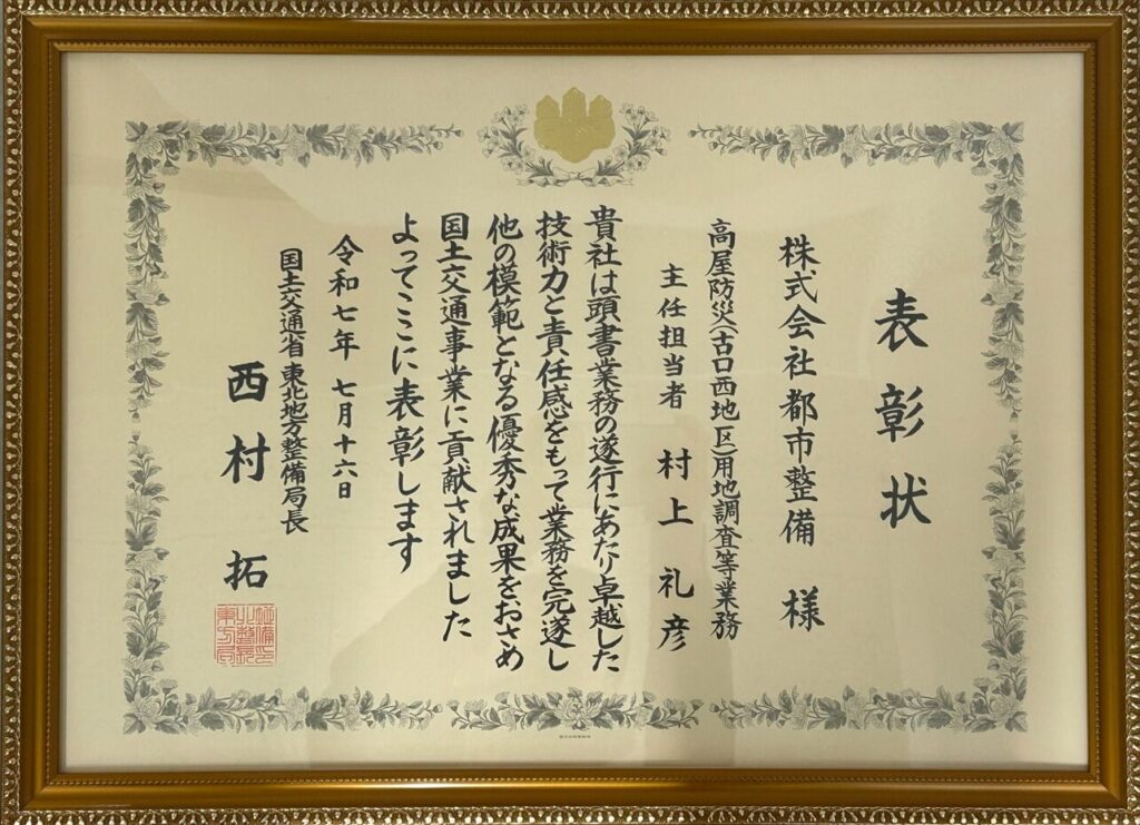 令和7年度 東北地方整備局局長表彰を受賞しました